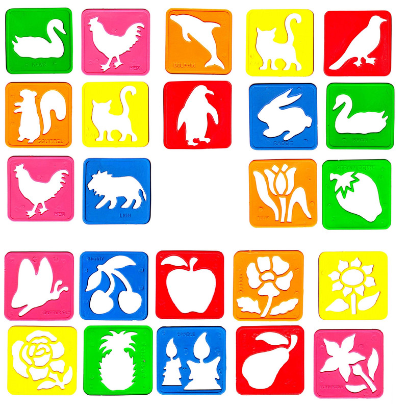 شابلون طرح حیوانات و گل و میوه مدل k1 مجموعه 24 عددی
