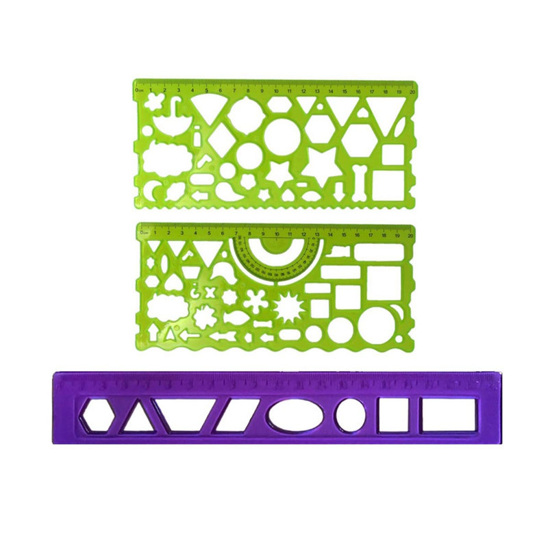خط کش و شابلون طرح اشکال هندسی مدل Shape 03 مجموعه 3 عددی