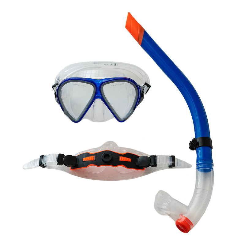 عینک موجود در این مجموعه دارای بند قابل تنظیم و نوار دور برای آببندی و جلوگیری از ورود آب می باشد ،همچنین این محصول یک فاصله هوایی بین چشمان غواص و آب ایجاد کرده و با استفاده از آن می توان اشیا و موجودات زیر آب را به وضوح دید.