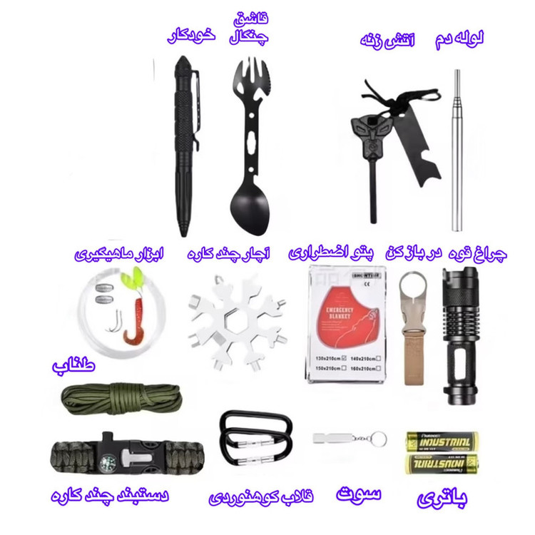 نوع تجهیزات جانبی سفر و کمپینگ: قطبنما , کارابین , ابزار نجات