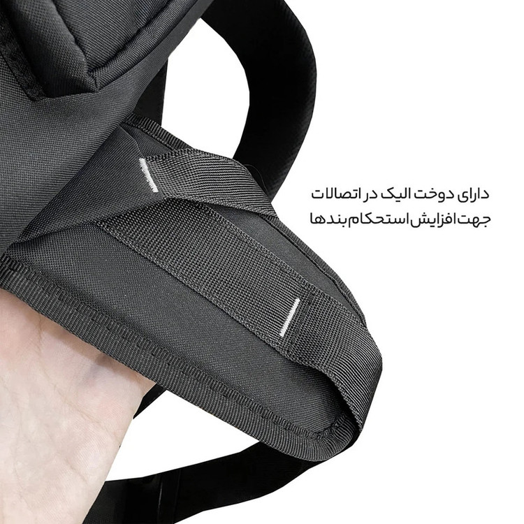 2 بند برای حمل به صورت کوله، 2 دسته برای حمل دستی و یک بند برای آویزان کردن کوله دارد