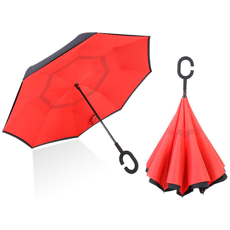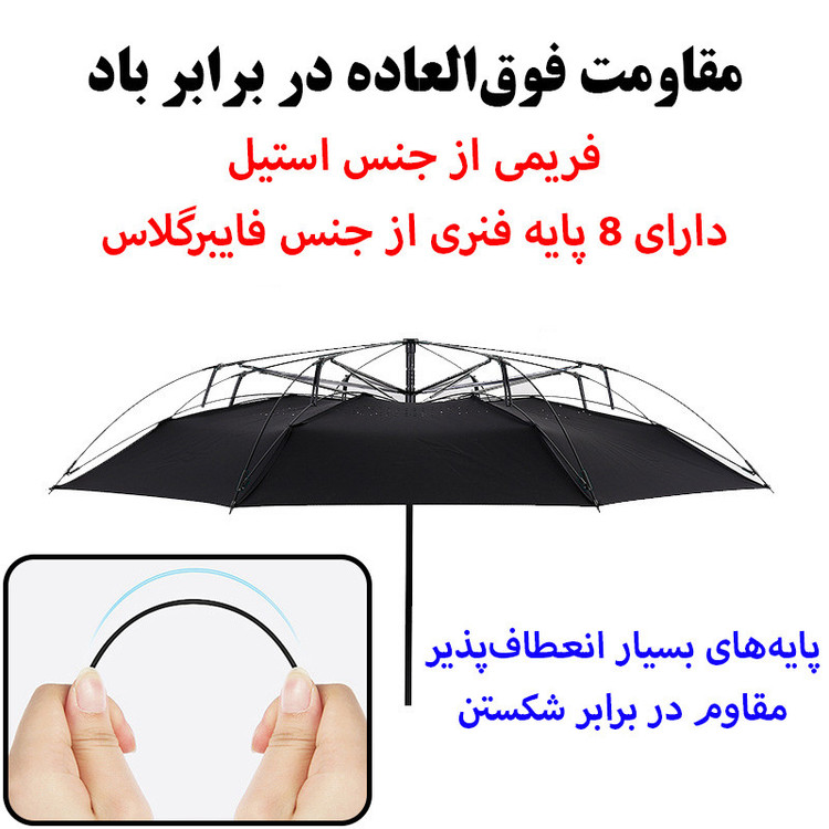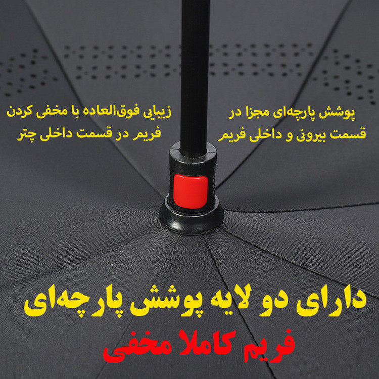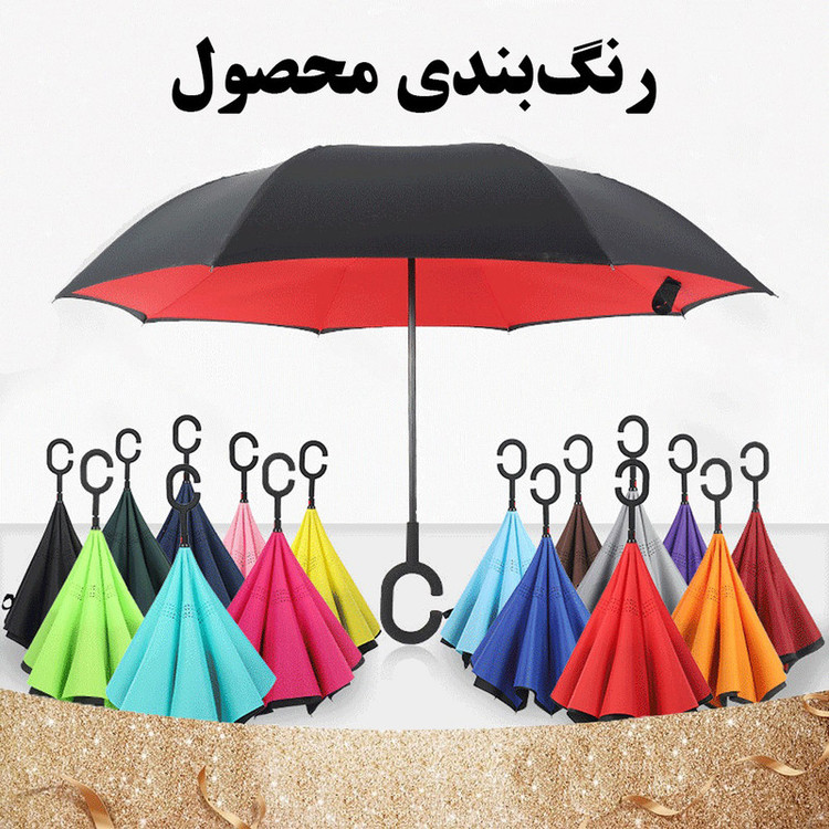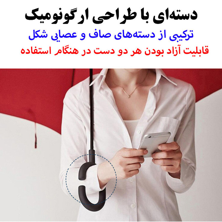 حالت باز و بسته شدن دستی و به صورت برعکس - اندازه چتر در حالت باز شده 108 سانتیمتر و طول چتر در حالت بسته شده 80 سانتیمتر - پارچه دو لایه و فریم پنهان در میان دو لایه - دسته با طراحی خلاقانه C شکل