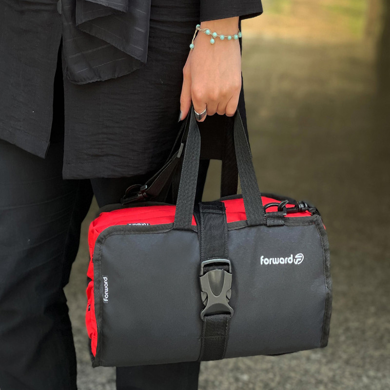 دارای دو دسته جهت حمل به صورت دستی دارای یک بند دوشی قابل تنظیم و قابل جدا شدن