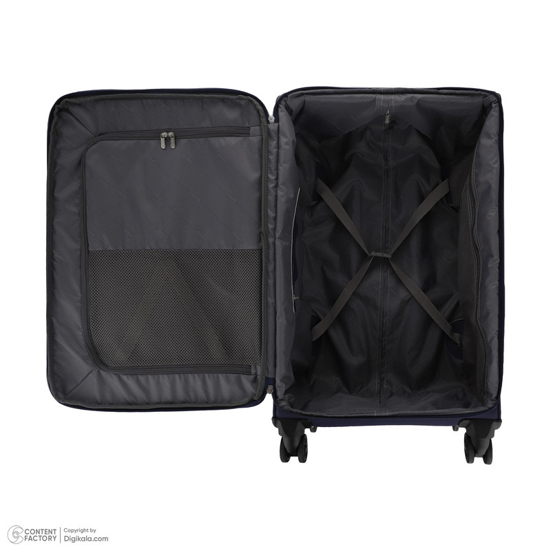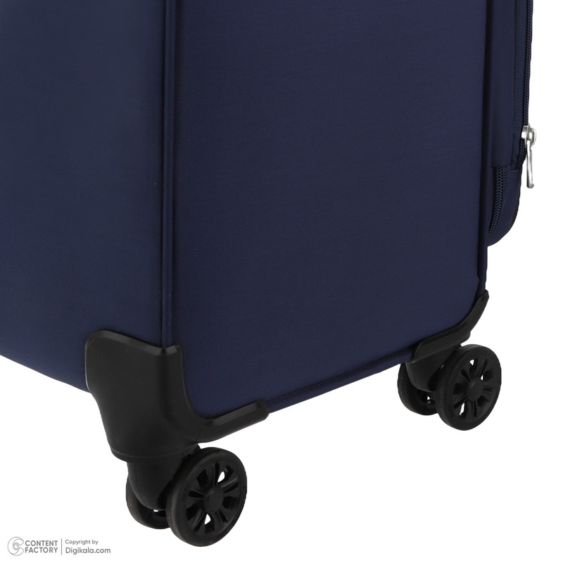 بدنهی چمدان از پارچهی پلیاستر مقاوم ساخته شده و دستهی ترولی آلومینیومی و ترکیب پلیپروپیلن و پلیاورتان در چرخها، استحکام و دوام بالایی به محصول بخشیده است. طراحی در دو رنگ زیبا و سه اندازهی مختلف مطابق با استانداردهای جهانی، امکان انتخاب بهینهترین سایز را بسته به نوع و مدت سفر فراهم میکند.