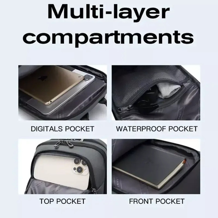 جیب بیرونی , جیب داخلی , دارای یک محفظه اصلی , محفظه نگهداری اسناد , محفظه نگهداری پاسپورت , محفظه کابل و شارژر , محفظه نگهداری تبلت