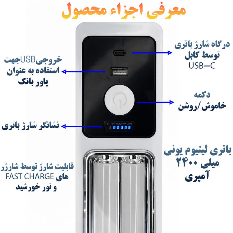 چراغ اضطراری مدل خورشیدی شارژی کد 6899T-1 45W