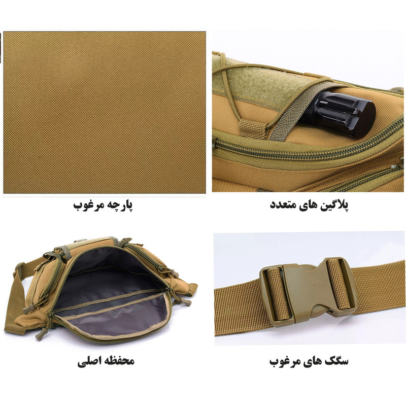 دارای یک محفظه اصلی , جیب بیرونی , جای قمقمه