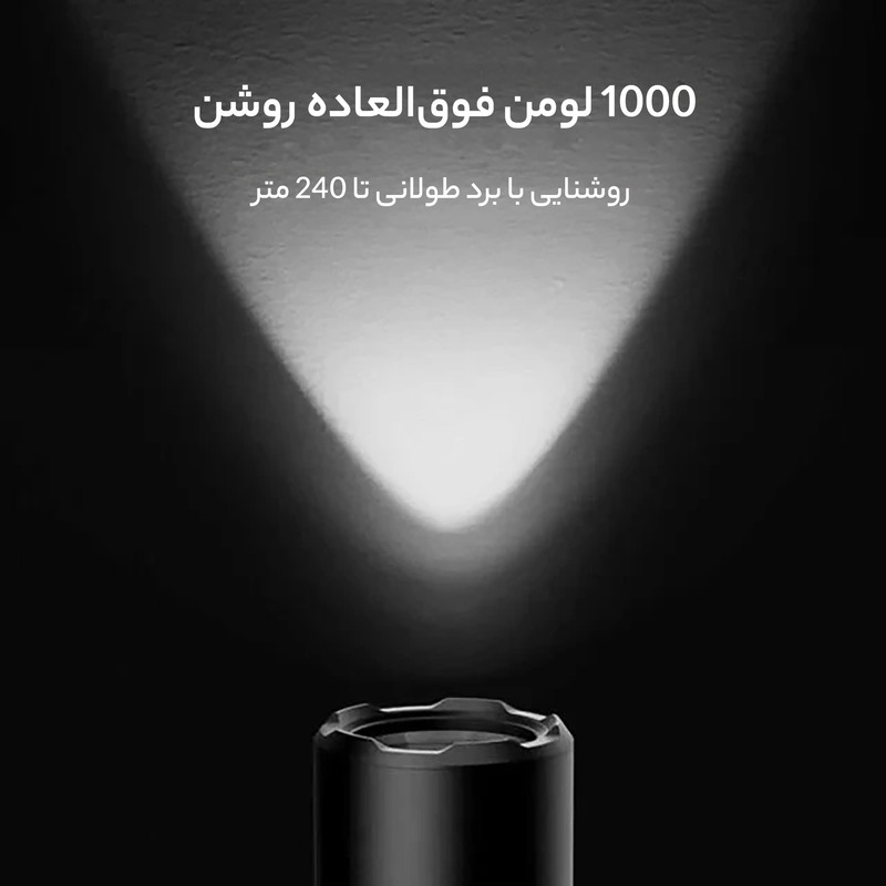 این چراغ قوه دارای ابعادی به طول 188x40.5x36 میلیمتر و وزنی برابر 240 گرم است پس در حمل آن نیز به مشکل نخواهید خورد حتی در کوهستان چرا که در دمای 15 درجه زیر صفر تا 45 درجه بالای صفر عملکرد خود را حفظ می کند. این محصول دارای شدت روشنایی 1000 لومن است که در سه سطح متفاوت قابل تنظیم است همچنین استفاده از لنز Fresnel باعث شده حداکثر برد نور این چراغ در بهترین حالت به 240 متر می رسد تا به راحتی مناطق دوردست را روشن کنید. از طرف طرف دیگر، چراغ قوه Xiaomi Multi-function Flashlight به باتری 3100 میلی آمپر ساعتی از نوع لیتیومی مجهز شده و شارژدهی بالایی دارد و می تواند در بهترین شرایط تا 90 ساعت نوردهی داشته باشد و در 180 دقیقه به شارژ کامل برسد. توجه داشته باشید میزان شارژدهی کاملا به نوع استفاده شما و شدت نور بستگی دارد. برای نمایش میزان باتری باقیمانده یک نشانگر دو رنگ روی بدنه قرار دارد. جهت شارژ چراغ قوه شیائومی از درگاه تایپ سی استفاده کنید. یک بند آویز نیز دارد که هنگام استفاده راحت تر باشید.