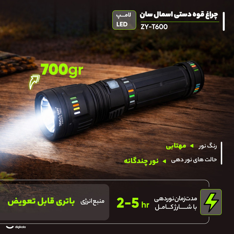 چراغ قوه دستی اسمال سان مدل ZY-T600 با نور مهتابی