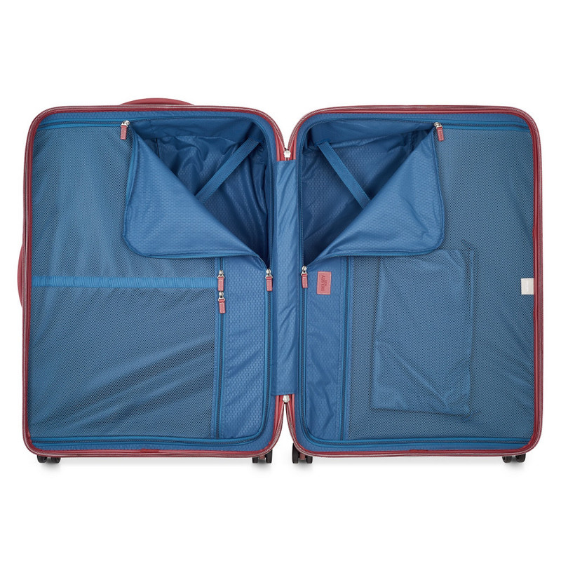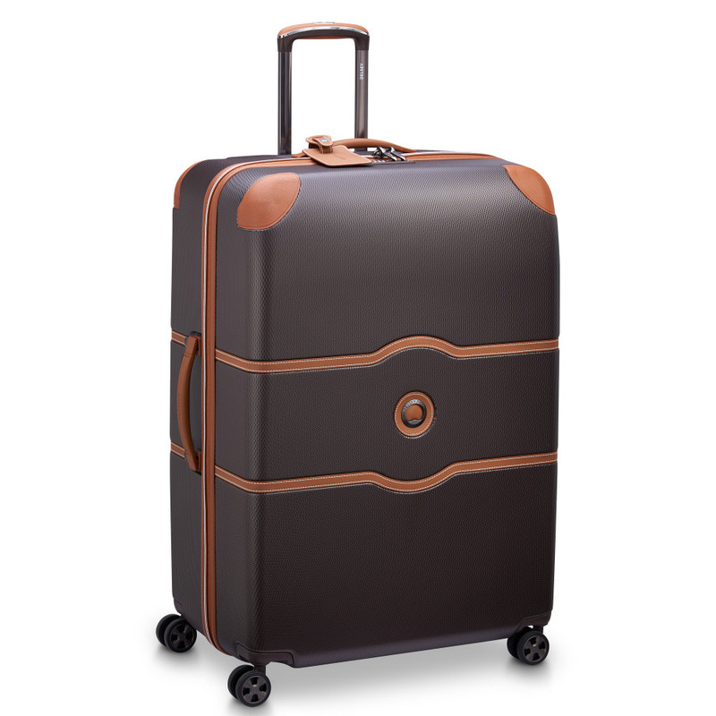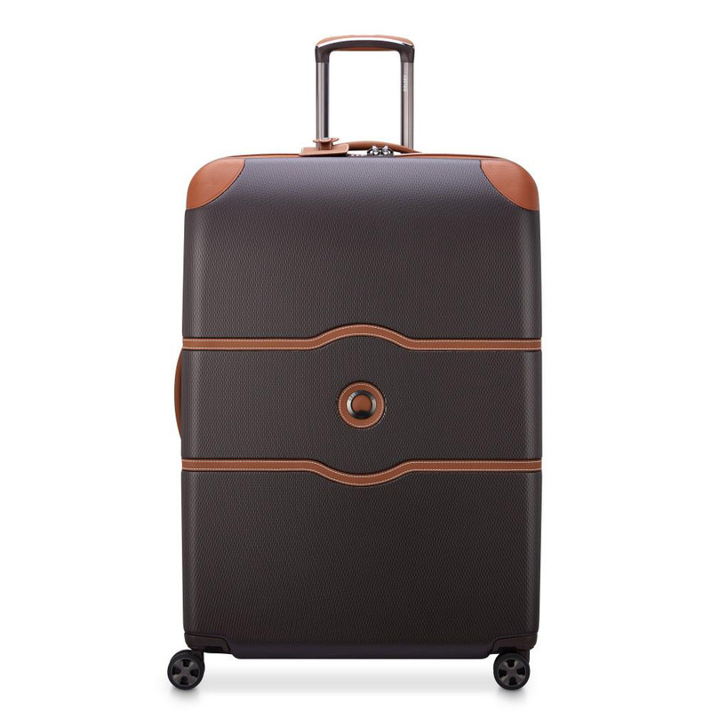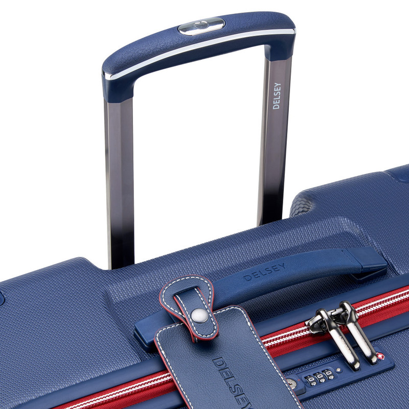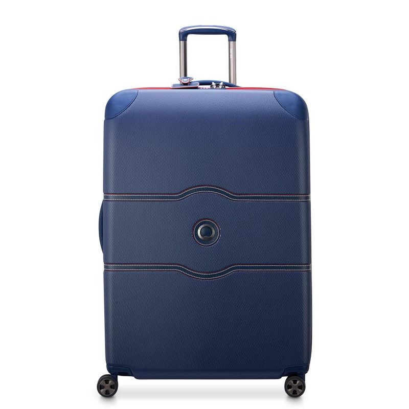 چمدان دلسی مدل چاتلت 82 سانتی متری Chatelet Air دارای چهار چرخ دوبل، دو دسته حمل با روکش چرمی، یک دسته ترولی تلسکوپی دو شاخه، یک قفل TSA ترکیبی 3 رقمی، زیپ تقویت شده، می باشد . جنس بدنه پلی کربنات است . دارای2 محفظه است .
