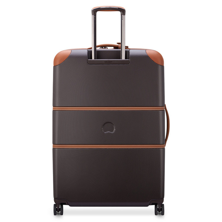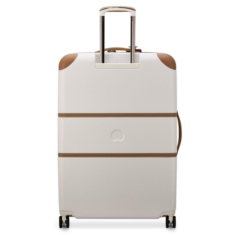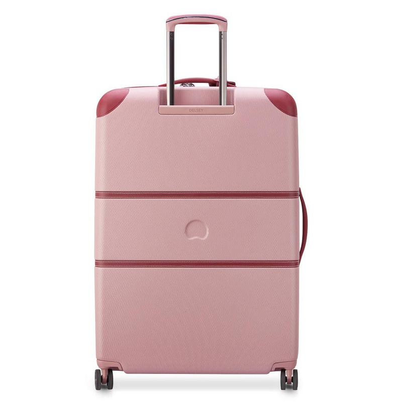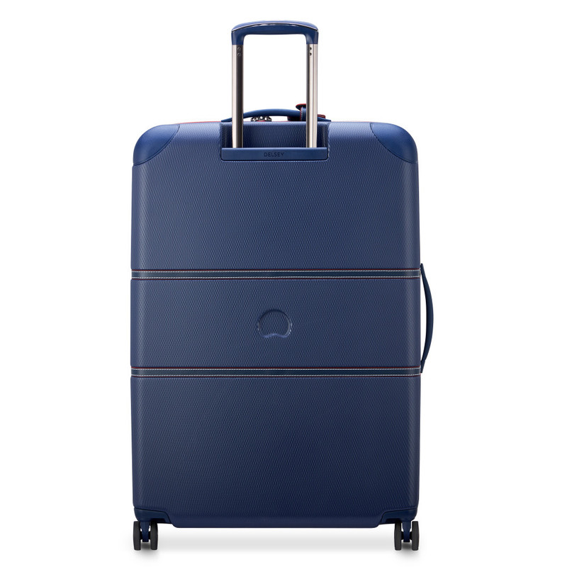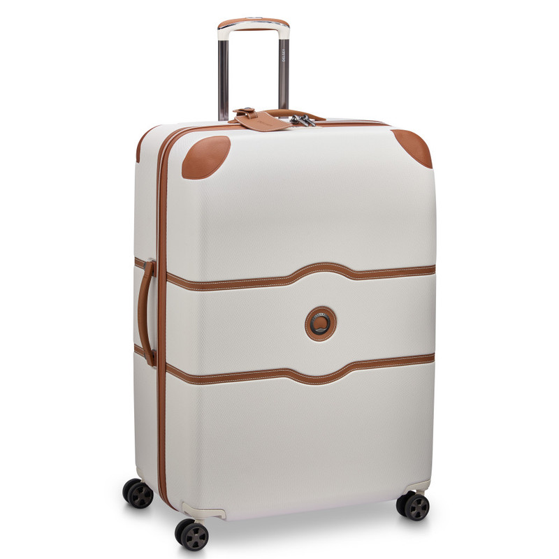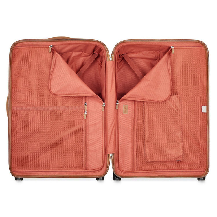 چمدان دلسی مدل چاتلت 82 سانتی متری Chatelet Air دارای چهار چرخ دوبل، دو دسته حمل با روکش چرمی، یک دسته ترولی تلسکوپی دو شاخه، یک قفل TSA ترکیبی 3 رقمی، زیپ تقویت شده، می باشد . جنس بدنه پلی کربنات است . دارای2 محفظه است .