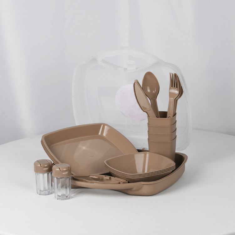 شامل ظروف: بشقاب , قاشق , چنگال , چاقو , لیوان , کاسه