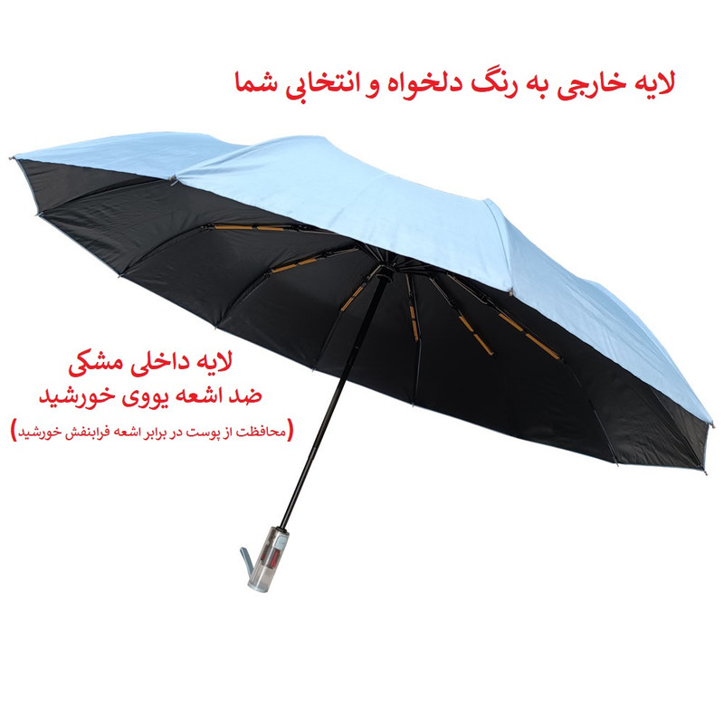 بسته شدن نرم و روان فنر ستون با کمترین فشار به واسطه تکنولوژی آرام بند، دسته شفاف و ارگونومیک، بند سیلیکونی، باز و بسته شدن چتر بصورت تمام اتوماتیک، 12 فنر 2 به 1، پارچه دولایه (لایه داخلی ضد اشعه یووی خورشید و همواره به رنگ مشکی)