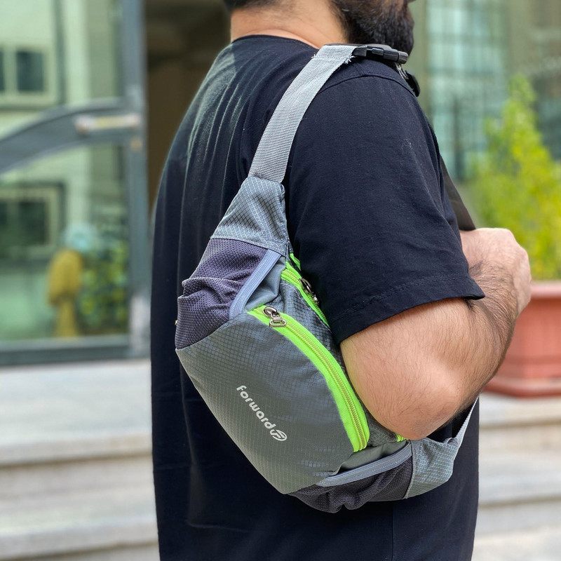 دارای ابر و آستر در سرتاسر کیف کمری دارای بند بسیار ضخیم قفل دار قابل تنظیم 4 سانتی متری پارچه ضد آب قابل شست و شو