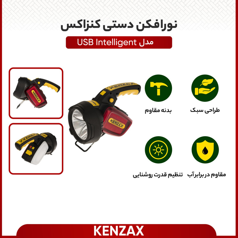 نورافکن دستی «کنزاکس» مدل «USB Intelligent» شامل سه منبع نور مختلف است تا بتوان بنا به شرایط از یکی از آنها استفاده کرد. چراغ اصلی این نورافکن نور مناسبی دارد و نهایت برد آن برابر با 300 متر است که باعث میشود این محصول برای زمان سفر به مناطق گوناگون کاربردی باشد. همچنین این چراغ دارای دو حالت نوردهی پرنور و کمنور است و بنا به موقعیت میتوان یکی از آنها را انتخاب کرد. دو منبع نوردهی دیگر این محصول نیز به شکل صفحههایی قرمز و سفید و در طرفین قرار گرفتهاند. صفحهی قرمز حالتی چشمکزن دارد و میتواند بهعنوان چراغخطر مورداستفاده قرار بگیرد. صفحهی سفید نیز دو حالت کمنور و پرنور دارد و نور ملایمی ایجاد میکند که میتواند برای بهتردیدن اجسام نزدیک مناسب باشد. این نورافکن دستی ضدآب است و در صورت افتادن از ارتفاعی برابر با یک متر آسیب نمیبیند. این موضوع آن را برای استفاده در انواع ماجراجوییها مناسب میسازد.