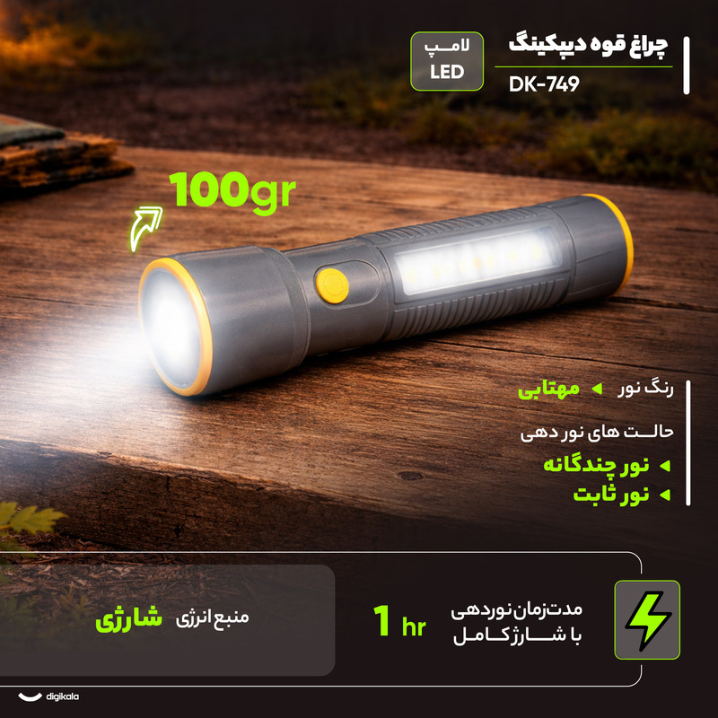 چراغ قوه دیپکینگ مدل DK-749 با نور مهتابی
