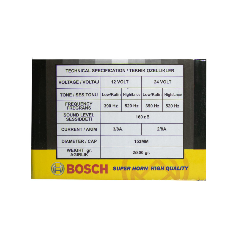 همه ما هنگام رانندگی با موانع و خطراتی رو به رو شده ایم . به همین منظور برای اعلان خطر نیاز به ابزاری برای اعلام حضور داریم بوق بوش مدل 10 11 بسته دو عددی نیاز شما را فرا تر از یک اعلام خطر برآورده میکند !. شرکت بوش یکی از برترین سازندگان این محصول است . اما این محصول توسط شرکت بوش آلمان ساخته نشده اما این دلیل بر کیفیت پایین این محصول نیست این محصول با افتخار ساخت ایران میباشد در این محصول تمام جزییات و آلیاژ های این بوق تا حد زیادی شبیه سازی شده . و به طور کلی صدا شباهت به بوق بوش فابریکی دارد . محصول ذکر شده دارای فیش و اتصال بدنه و رله مخصوص میباشد . این محصول دارای هولوگرام اصالت و کیفیت کالا میباشد . هنگام خرید حتما به هولوگرام دقت شود طرح هولوگرام در عکس کالا کاملا مشهود است .