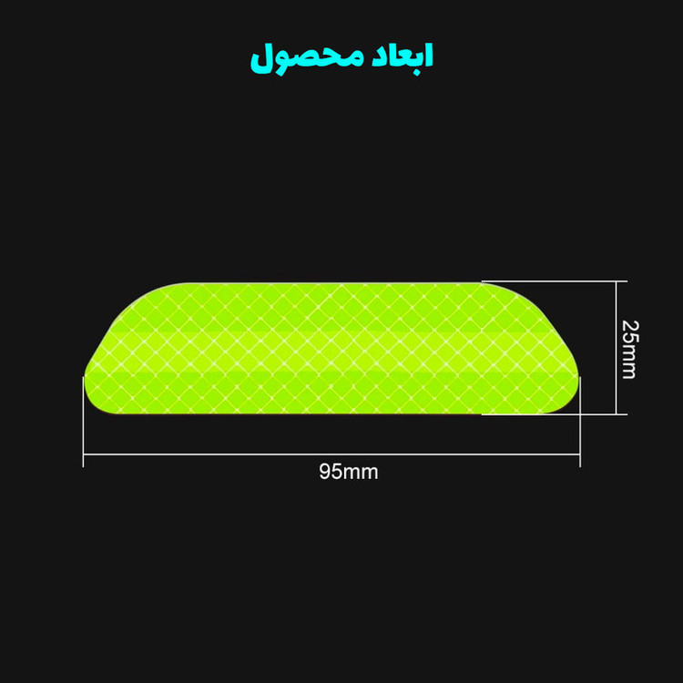 ضد آب بازتاب قدرتمند چسبندگی قوی نصب آسان عدم آسیب به رنگ بدنه خودرو ماندگاری خاصیت شبرنگی بیش از ۷ سال 4 عدد برچسب با طول و عرض ۹۵ در ۲۵ میلیمتر