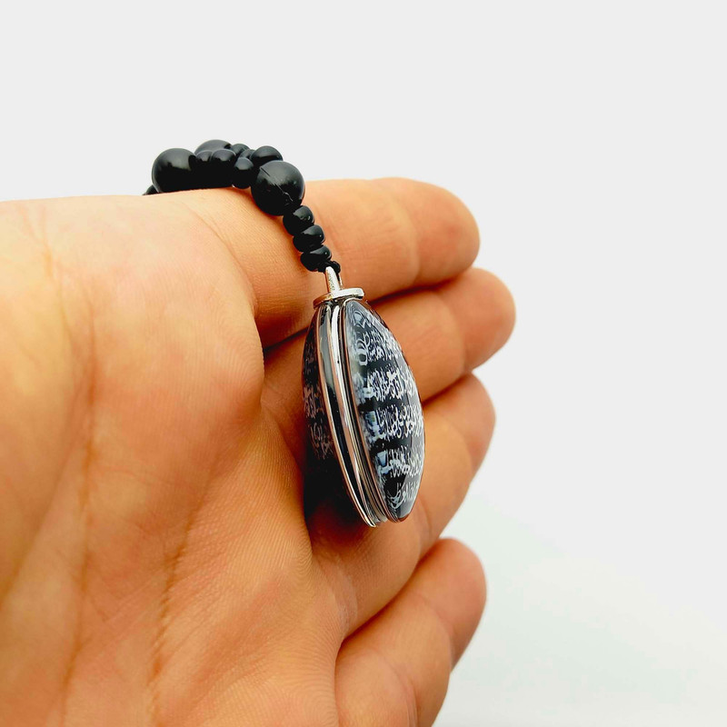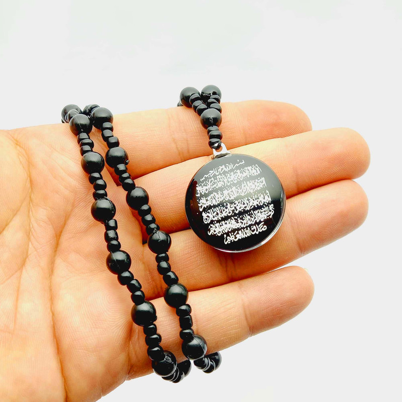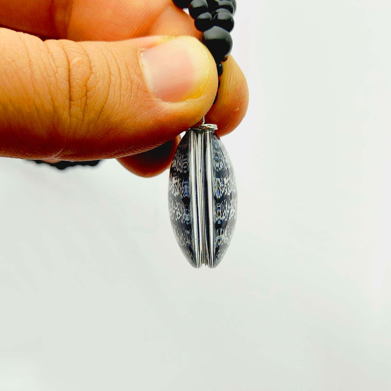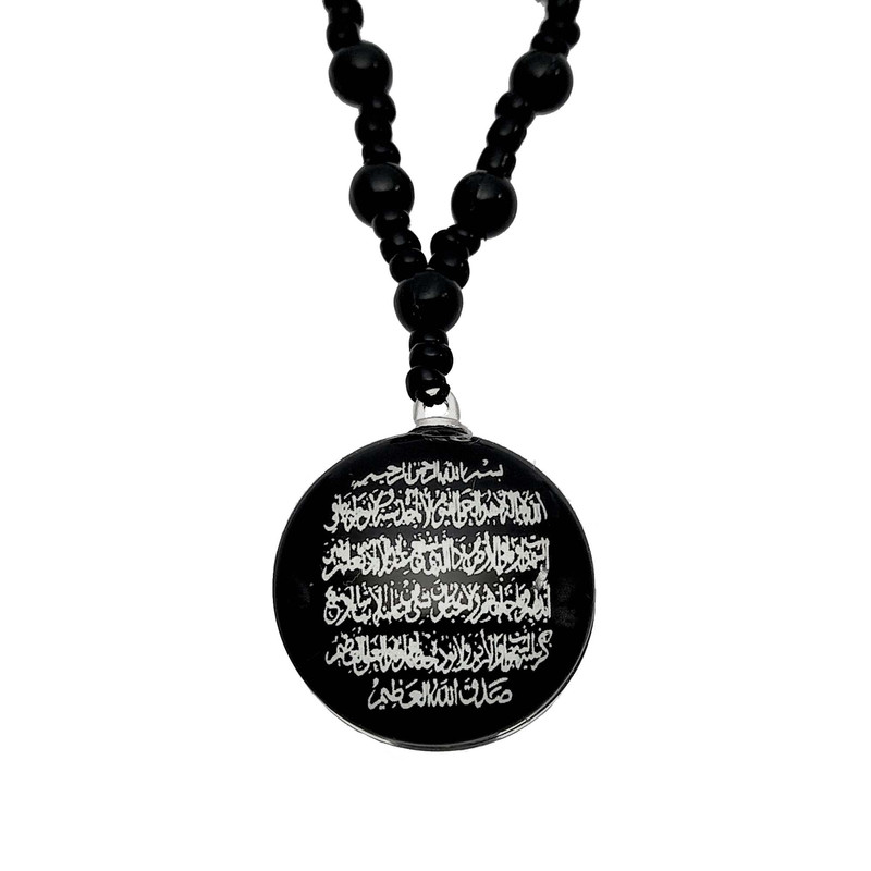 طول زنجیر 66 سانتی متر جنس زنجیر الیاف نخی و پلاستیک جنس پلاک از شیشه میباشد پلاک به صورت دوطرفه و برجسته میباشد