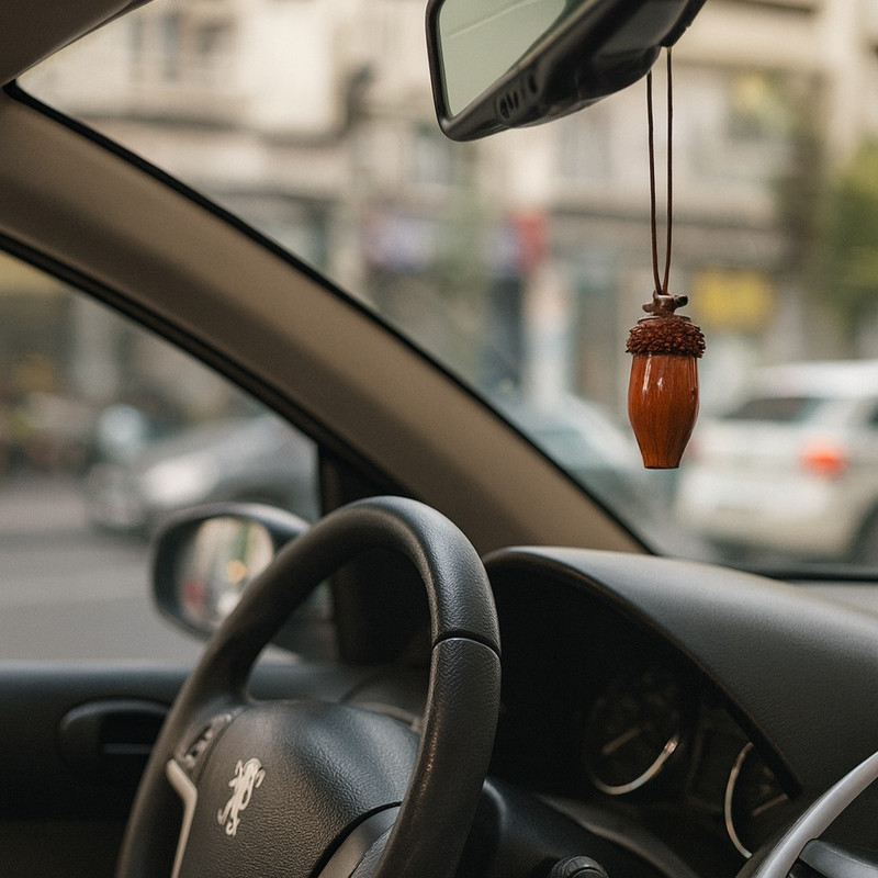 مشخصات ظاهری : جنس بدنه : بلوط طبیعی جنس کلاهک : بلوط واقعی رنگ : قهوهای طبیعی چوب نوع آویز : آویز تزئینی خودرو محل نصب : آینه وسط خودرو جنس بند: الیاف مصنوعی طرح چرم فرآیند ساخت و نوع ساخت: دستساز پرداخت سطح : دو لایه وارنیش کرال
