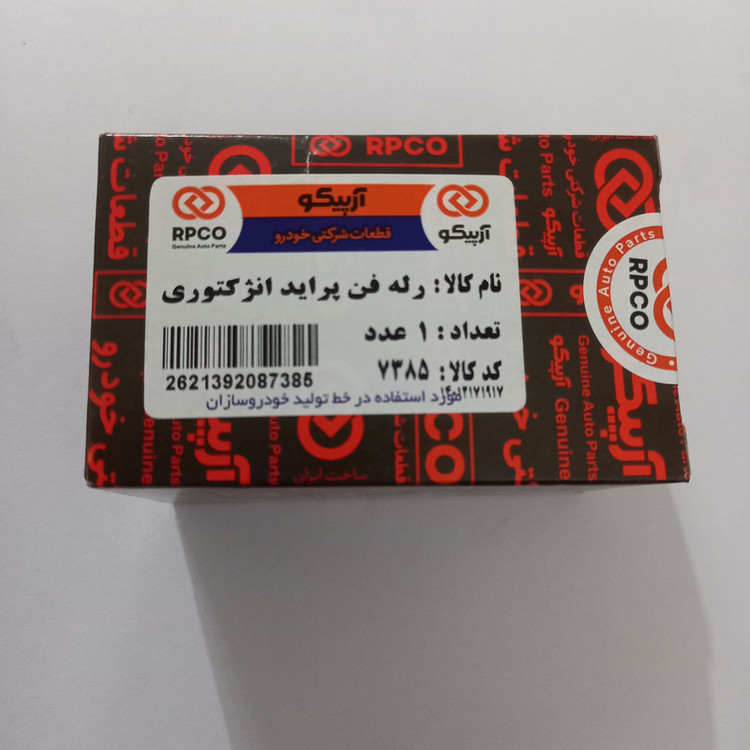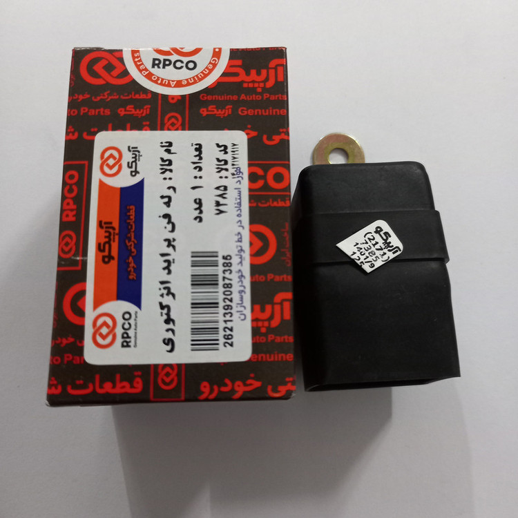-رله فن انژکتور پراید در بسته بندی آرپیکو با لیبل هولوگرامدار و کد کالای 7385 عرضه و مورد تایید میباشد