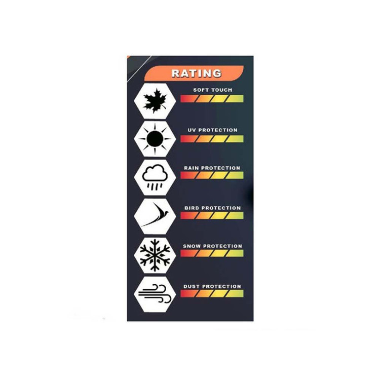 سایر توضیحات: 1.مقاوم در برابر آب 2.مقاوم در برابر نورخورشید 3.مقاوم در برابر گردو غبار 4.دولایه 5.پشت کرک