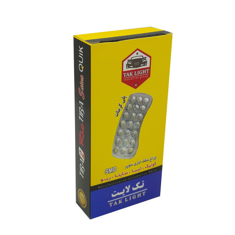 سایر توضیحات: چراغ سقف وصندوق کوییک با نور سفیدیخی بسته بندی تک لایت