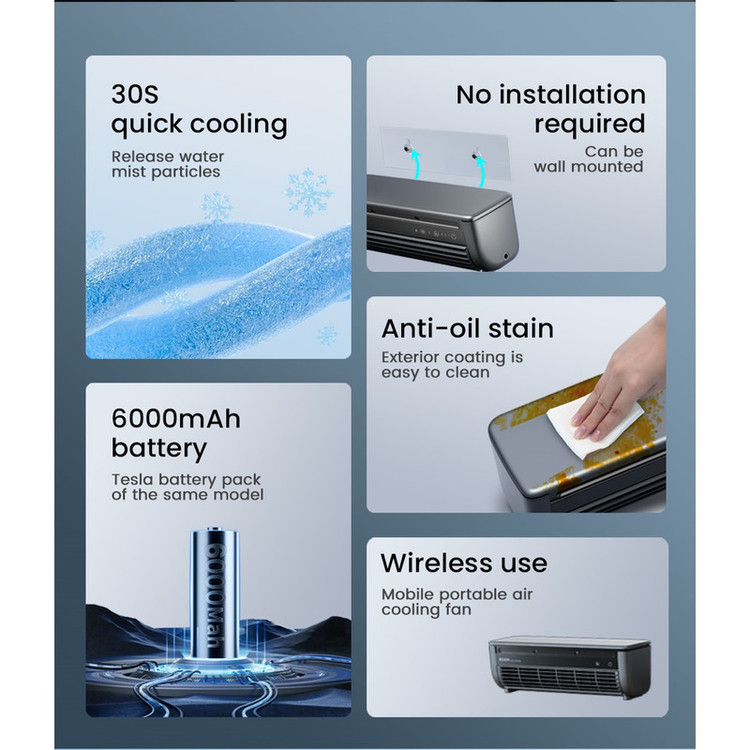 کابل همراه , تایمر , ریموت کنترل , محافظ پره , منبع آب , قابلیت آبپاش , قابلیت تنظیم سرعت , قابلیت نصب روی دیوار , قابلیت کنترل از راه دور , قابلیت تنظیم زاویه , دستگاه نمایش وضعیت