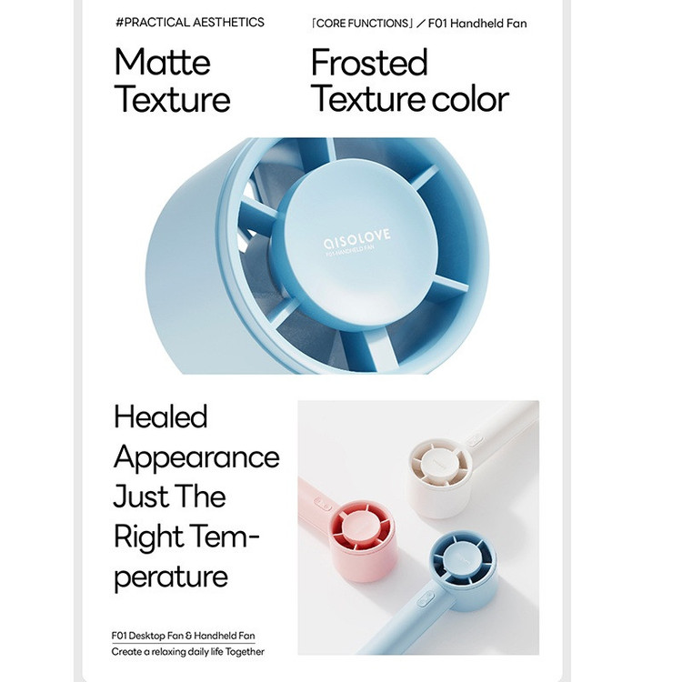 پنکه دستی ALSOLOVE F01 دارای طراحی مینیمالیستی و مدرن است که به راحتی در دست جای می گیرد. این پنکه به گونهای طراحی شده که استفاده از آن حتی برای مدت طولانی نیز راحت باشد. طراحی ارگونومیک آن باعث می شود که دست کاربر در هنگام استفاده خسته نشود.ابعاد این پنکه به گونه ای است که به راحتی در کیف یا جیب قرار می گیرد. ابعاد دقیق آن 161x61x48.9 میلی متر است. وزن پنکه دستی SOLOVE F01 تنها 125 گرم است. پنکه کوچک دستی و قابل حمل شارژی ALSOLOVE F01 دارای 5 سرعت مختلف باد است که می توانید بر اساس نیاز خود، سرعت مناسب را انتخاب کنید. این ویژگی باعث می شود که این پنکه در شرایط مختلف، از جمله محیط های گرم و مرطوب، عملکرد مناسبی داشته باشد. برای تغییر حالت سرعت پنکه دستی ALSOLOVE F01 ، می توانید از دکمه چند منظورهای که بر روی بدنه پنکه قرار دارد استفاده کنید. ابتدا دکمه چند منظوره را فشار دهید تا پنکه روشن شود. با اولین فشار، پنکه در حالت سرعت کم شروع به کار می کند. برای تغییر حالت سرعت، دکمه چند منظوره را مجدداً فشار دهید. هر بار که دکمه را فشار می دهید، پنکه به حالت سرعت بعدی منتقل می شود. به ترتیب، پنکه از حالت سرعت کم به متوسط، بالا، بسیار بالا و در نهایت به حالت توربو تغییر می کند.ظرفیت باتری به کار رفته در پنکه برابر با 1200 میلی آمپر/3.7V-4.44WH بوده؛ با استفاده از کابل تایپ سی با توان ورودی 5 وات در حدود 2.2 ساعت شارژ میشود و تا 1.2-4.2 (وابسته به سرعت پنکه) ساعت میتواند روشن بماند.