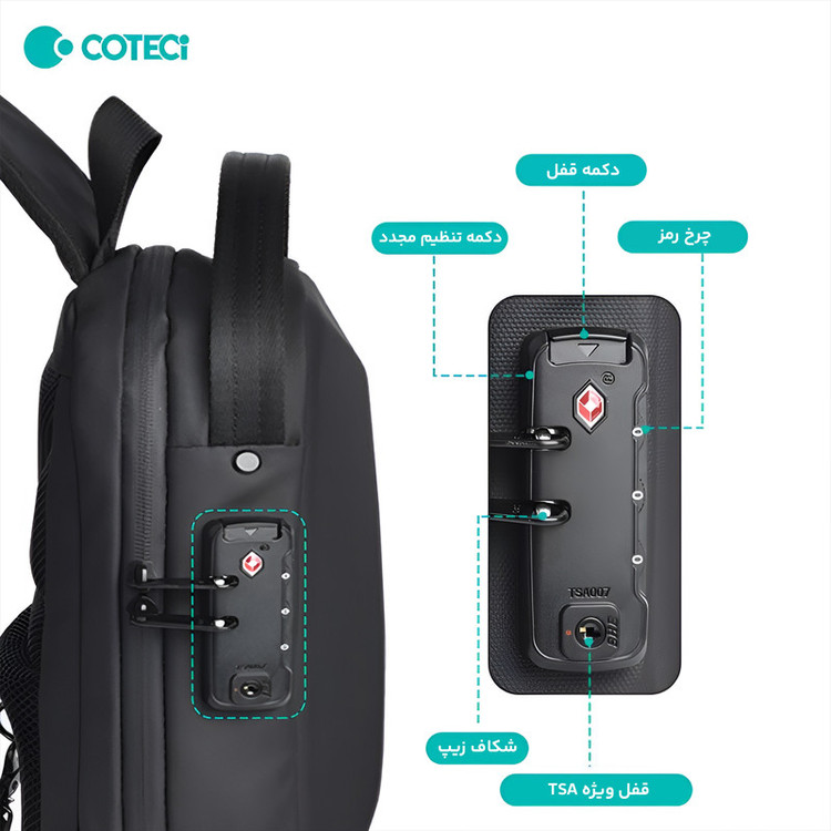 ویژگیهای کیف و کوله: قابلیت تنظیم بند , جای عینک , پشتی پد دار , پد شانه , زیپ با قابلیت قفل شدن