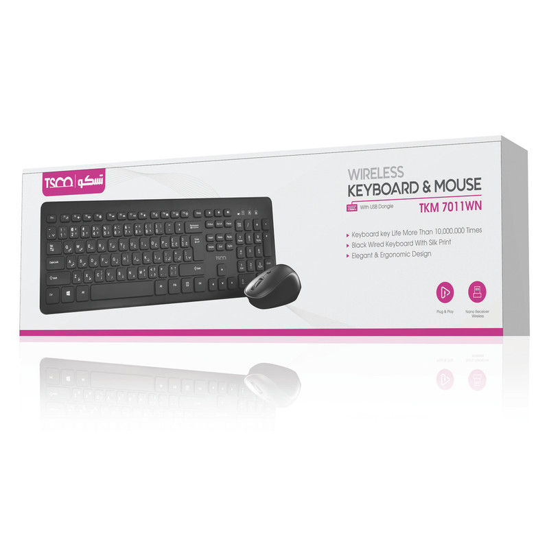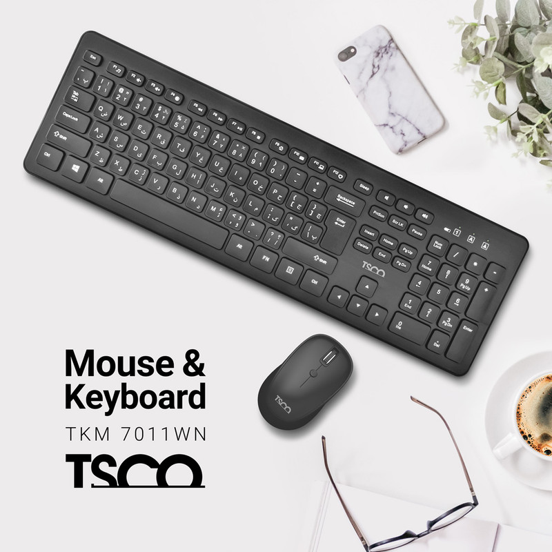 کیبورد و ماوس بی سیم تسکو مدل TKM 7011WN سوئیچ ممبران، Full-Size