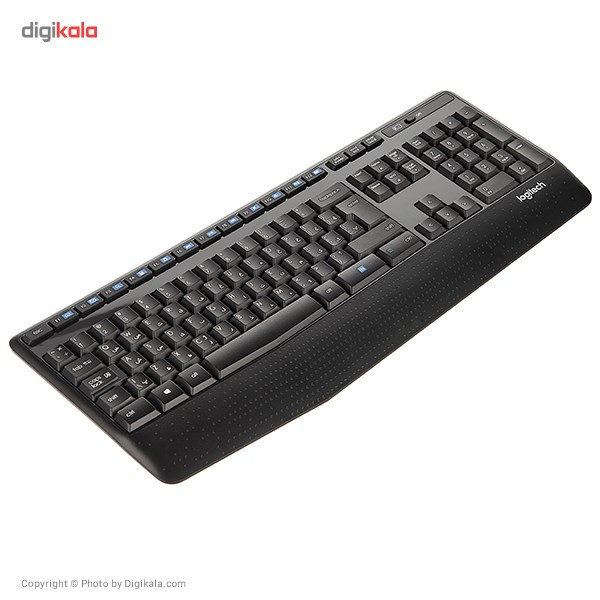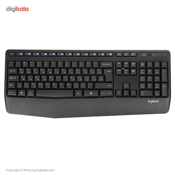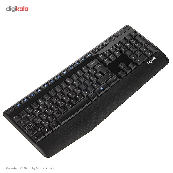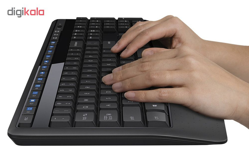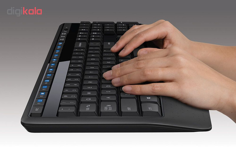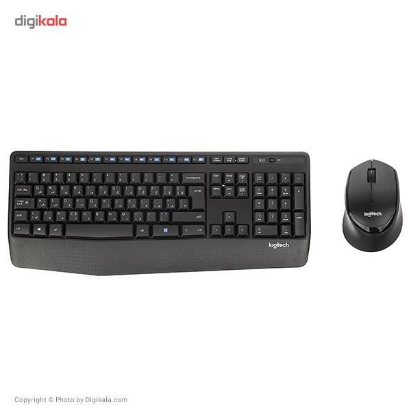 محصول «MK345» شرکت لاجیتک (Logitech) یک کیبورد همراه ماوس است که برای مصارف خانگی و اداری ایدئال است. ماوس و کیبورد این مجموعه از طریق بلوتوث و دانگل USB به کامپیوتر متصل میشود و تا 10 متر مسافت بهخوبی پشتیبانی میکند. انرژی موردنیاز این مجموعه از طریق باتری آلکالاین تأمین میشود و تا مدتها نیاز به تعویض مجدد نخواهند داشت. کیبورد MK345 دارای 103 کلید است و تا 10 میلیون ضربه کارایی مناسب دارد. ماوس این مجموعه هم از طراحی ارگونومیکی خوبی برخوردار است بهگونهای که پس از چند ساعت کار با آن احساس خستگی در مچ دست احساس نخواهید کرد. سنسور این ماوس از نوع اپتیکال است دقتی برابر با 1000dpi دارد. وزن این ماوس 86 گرم است و برای یک ماوس خانگی بسیار مناسب است. شرکت لاجیتک یکی از بزرگترین تولیدکنندگان تجهیزات جانبی کامپیوتر است که محصولات باکیفیت و بادوامی روانهی بازار میسازد. اگر به دنبال یک مجموعهی باکیفیت و خوشساخت هستید، MK345 بهخوبی قادر است نیازهای شمارا پاسخگو باشد. همچنین کیبورد این مجموعه دارای حروف فارسی است که برای تایپ فارسی مناسب است.