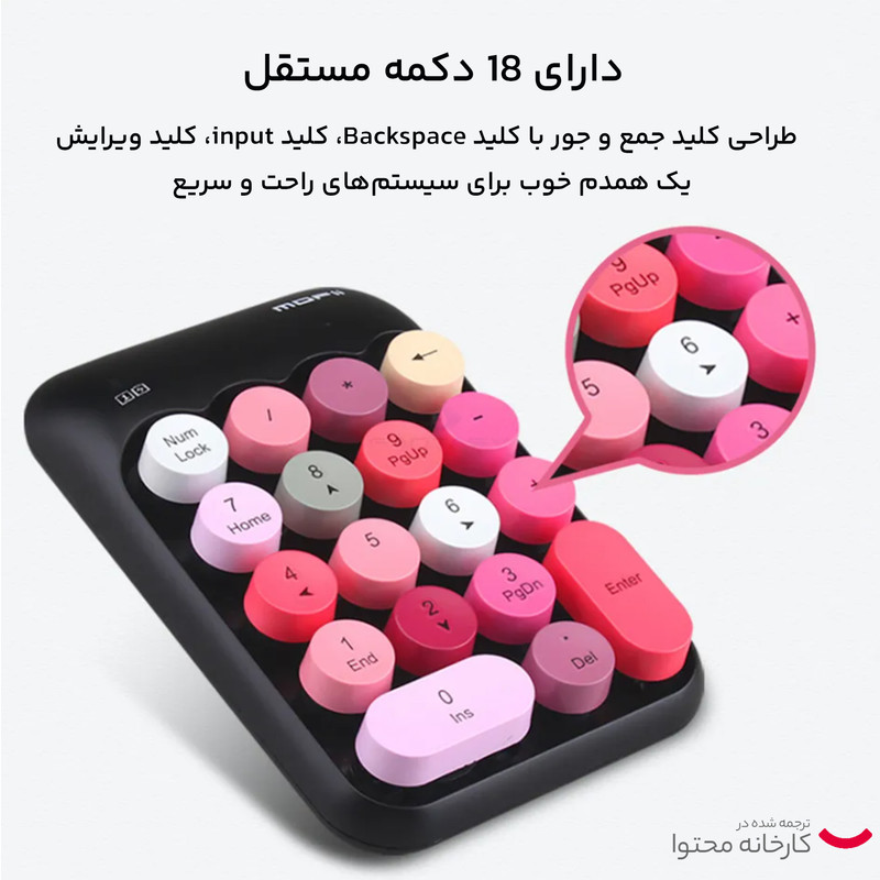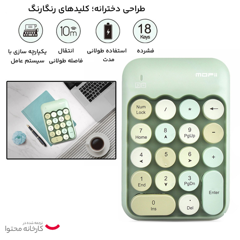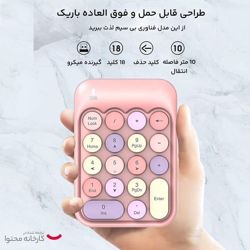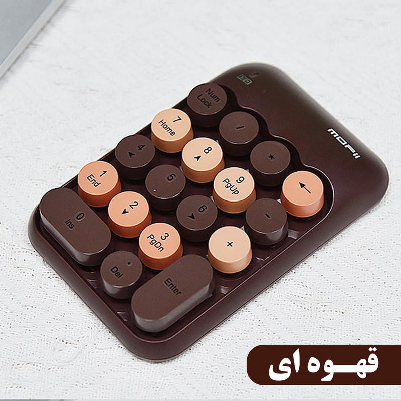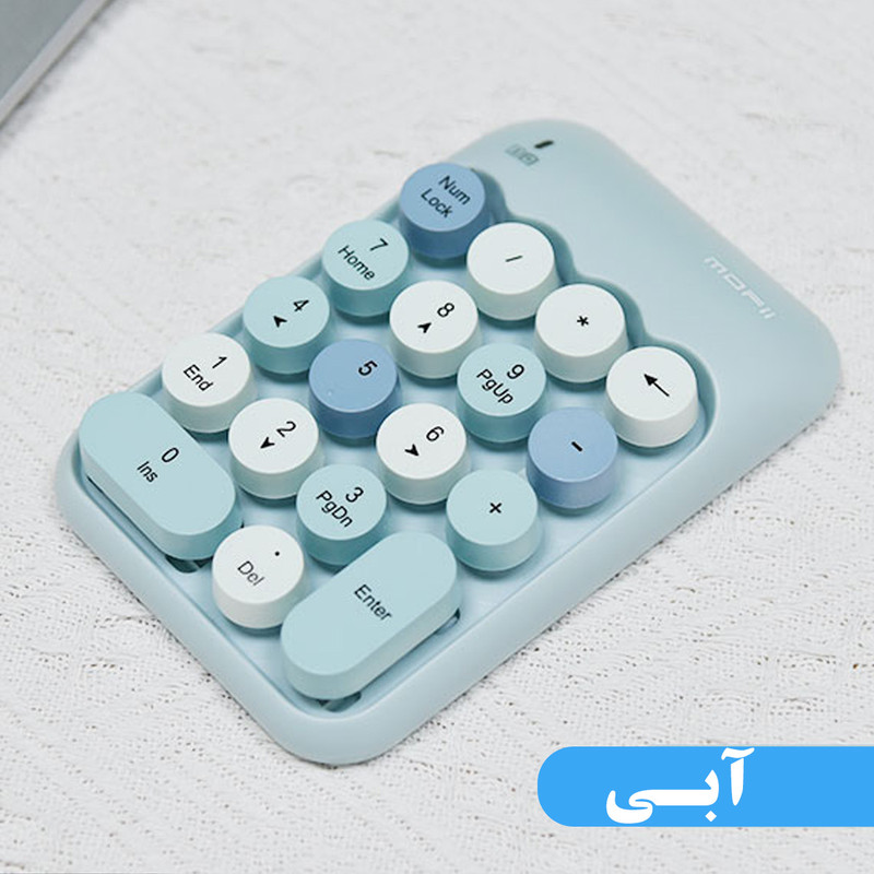 کیبورد نام پد بیسیم مافی مدل x910 که فقط روی آن نام پد کیبورد تعبیه شده بسیار کوچک و کم جا میباشد . این کیبورد زیبا مخصوص اشخاصی میباشد که بیشترین کار آنها با اعداد و حسابداری است ، البته بعضی از افرادی هم که کیبورد کوچک و بدون نام پد دارند هم کاربرد دارد.