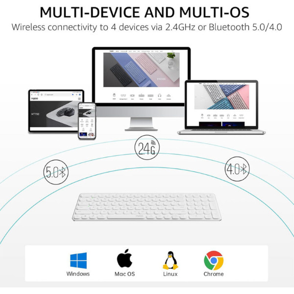 در دنیای امروز که زیبایی و کارایی توأمان اهمیت دارند، کیبورد بیسیم رپو مدل E9350L گزینهای برجسته برای کاربرانی است که به دنبال یک تجربه تایپ مدرن و راحت هستند. ویژگی بارز این کیبورد، طراحی فوقباریک و مینیمالیستی آن است که با بدنه آلومینیومی مات تکمیل میشود. این طراحی نه تنها جلوهای شیک و زیبا به میز کار شما میبخشد، بلکه به دلیل وزن کم و ابعاد جمعوجور، قابلیت حمل بالایی نیز دارد.