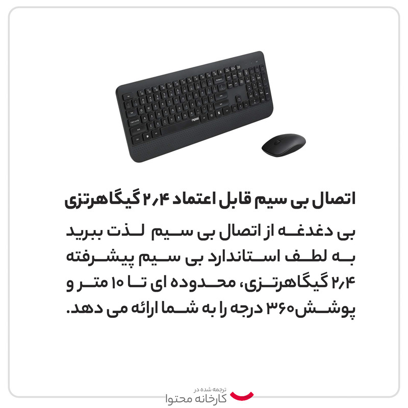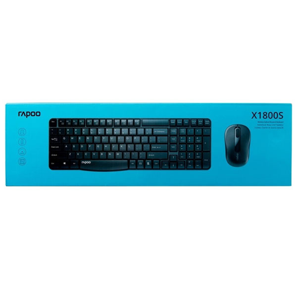 کیبورد و موس رپو مدل X1800S مجموعهای شامل یک موس و یک کیبورد بیسیم است که اتصال مطمئن به دستگاه در فرکانس 2.4 گیگاهرتز را برای کاربران فراهم میکند. استاندارد بیسیم و پیشرفته 2.4 گیگاهرتز، محدوده عملکرد (بُرد) تا شعاع 10 متر و پوشش 360 درجه را در اختیار کاربران قرار میدهد. کیبورد این مجموعه با تعداد 105 کلید، طراحی کاربردی و طرز کار آسان از صفحه کلید عددی و فانکشن بهره میبردو دارای حروف انگلیسی می باشد. موس اپتیکال این مجموعه دارای حسگری با دقت 1000 نقطه بر اینچ (DPI) است و به لطف موتور ردیابی نامرئی، امکان کنترل دقیق و روان نشانگر موس فراهم میشود. سه دکمه شامل یک چرخ اسکرول دوبعدی بر روی این موس تعبیه شده است و همچنین دارای دکمه ON/OFF می باشد.این مجموعه با یک عدد دانگل USB به کامپیوتر متصل میشود. روش نصب، ساده و بدون نیاز به درایور و تنظیمات است و به شکل Plug & Play صورت میگیرد. سازگاری با سیستمعاملهای ویندوز XP/Vista/7/8/10 و همچنین سیستم عامل MacOS از دیگر ویژگیهای این مجموعه است. میانگین بالای عمر باتریها در این ماوس و کیبورد، از نقاط قوت این محصول شرکت رپو به حساب میآید.