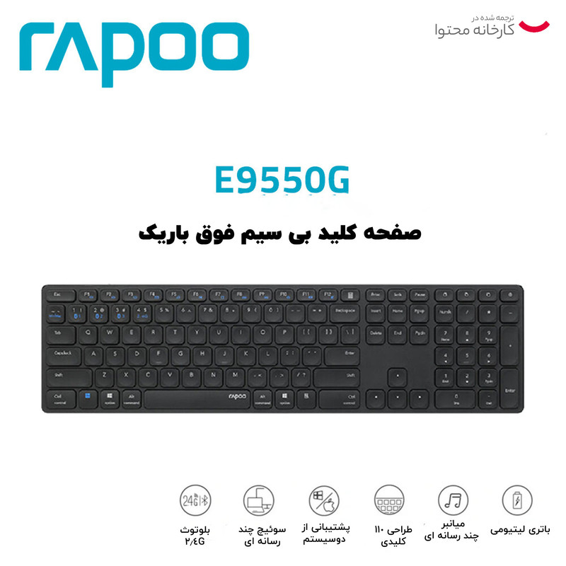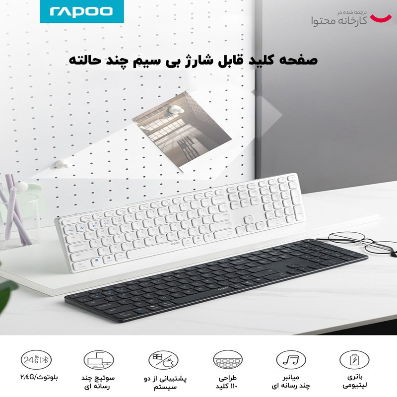 این کیبرد با 3 نوع اتصال بی سیم 4 دستگاه سوئیچینگ قاب و پشت آلومینیومی مات شده ساختار طرح بندی 110 کلید با 17 کلید میانبر چند رسانه ای در سیستم Winو پشتیبانی از عملکرد کلید سیستم دوگانه ویندوز و مک باتری لیتیومی داخلی 300 میلی آمپر ساعتی حدود 60 تا 96 ساعت دوام می آورد. همچنین دارای کلید خاموش و روشن و پورت تایپ سی جهت شارژ می باشد.