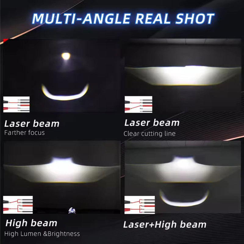 شامل دو عدد لنز ولتاژ ورودی 12 ولت بای لد (نور پایین و بالا ال ای دی) رنگ نور سفید 12 ولت دارای دو لیزر سایز 2/5 اینچ دارای دو نور بالا یک نور بالا نقطه زن جاده ای و یک نور بالا واید شهری دارای خط کات بسیار دقیق و Z