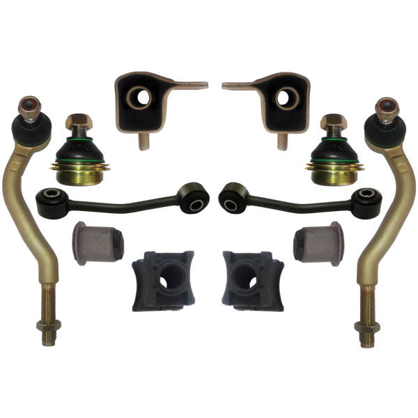 مجموعه جلوبندی کامل سمند شامل 12 عدد قطعه به شرح: دو عدد سیبک زیر اکسل، دو عدد سیبک فرمان،دو عدد میل موجگیر، دو عدد لاستیک موجگیر، دو عدد بوش طبق لبه دار و دو عدد بوش طبق جناقی میباشد.