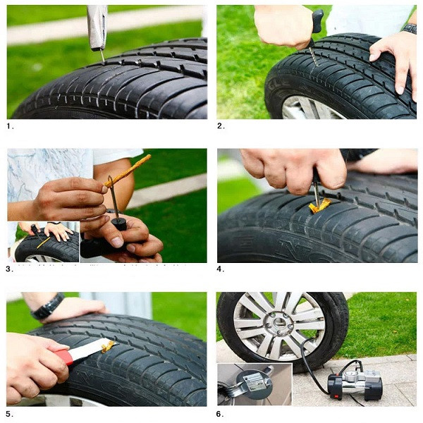 حتما هنگام رانندگی در جاده یا خیابان، افرادی را دیده باشید که پس از پنچر شدن لاستیک خودرو، مستأصل و درمانده کنار گذرگاه ایستادهاند و منتظر کمک کسی برای تعویض لاستیک هستند. حتی شاید هم خود شما یکی از همانها بودهاید؟! اگر در دور افتاده ترین جادهها و روستاها و هنگام مسافرت با پنچری تایر خودرو مواجه شدهاید! اگر خانم هستید یا که قادر به باز کردن پیچها برای تعویض چرخ پنچر شده نیستید! اگر هنگام رساندن یک فرد بیمار به بیمارستان دچار این مشکل شدهاید! اگر در گرمای تابستان و یا زیر باران شدید ماشینتان پنچر شده است! اگر در برف و سرمای زمستان دچار این مشکل شدهاید! این محصول با دارا بودن لوازم پنچرگیری شامل گیره و نخ پنچرگیری جزو محصولات ضروری در خودرو محسوب می گردد. همه ما می توانیم پنچری لاستیک تیوبلس انواع خودروهای بزرگ و کوچک و 4x4 را برطرف کنیم. این محصول با ابعاد مناسب و دسته فلزی مستحکم برای کاربران طراحی و ساخته شده است و همراه داشتن آن برای رانندگان به ویژه در سفر و عدم دسترسی به خدمات خودرویی بسیار کارآمد و کار راه انداز است و از اینکه چنین محصولی را در اختیار داریم احساس رضایت بسیاری خواهیم داشت. نحوه کار با آن نیز به این شکل است که در صورت مواجه شدن با پنچری لاستیک خودرو در اثر فرورفتگی میخ یا هر شی ء دیگر ابتدا یک عدد نخ داخل قلاب جا گذاری می شود. به نحوی که دو سر نخ به موازات قلاب هم اندازه باشد. سپس شیء عامل پنچری با استفاده از انبردست یا دم باریک از لاستیک خارج می شود و بلافاصله درفش سنباده -با همان زاویه ای که میخ از لاستیک خارج شده است- در محل پنچری قرار داده می شود تا مسیر سوراخ لاستیک کاملا برای قرار دادن نخ مربوطه باز و آماده سازی شود. پس از خارج کردن درفش بلافاصله قلاب حامل نخ به صورت کامل داخل لاستیک قرار داده می شود به گونه ای که نخ در داخل لاستیک آزادانه بچرخد سپس قلاب به اندازه ای که فقط سرنخ، بیرون لاستیک قرار گیرد بیرون کشیده می شود و نخ از سر قلاب که شکاف دارد آزاد می شود یا با تیغ یا سیم چین از نوک قلاب برید می شود. به شکلی که حداقل نیم سانتیمتر از نخ دولایه، بیرون لاستیک قرار گیرد. پس از آن باد لاستیک بالانس می شود. عنایت داشته باشید که افراد تازه کار ممکن است به علت کم دقتی و عدم توجه به زاویه سوراخ شدگی در لاستیک، قلاب را بشکنند.