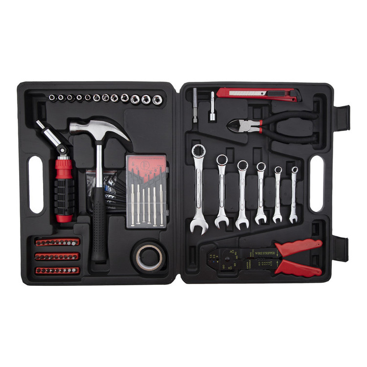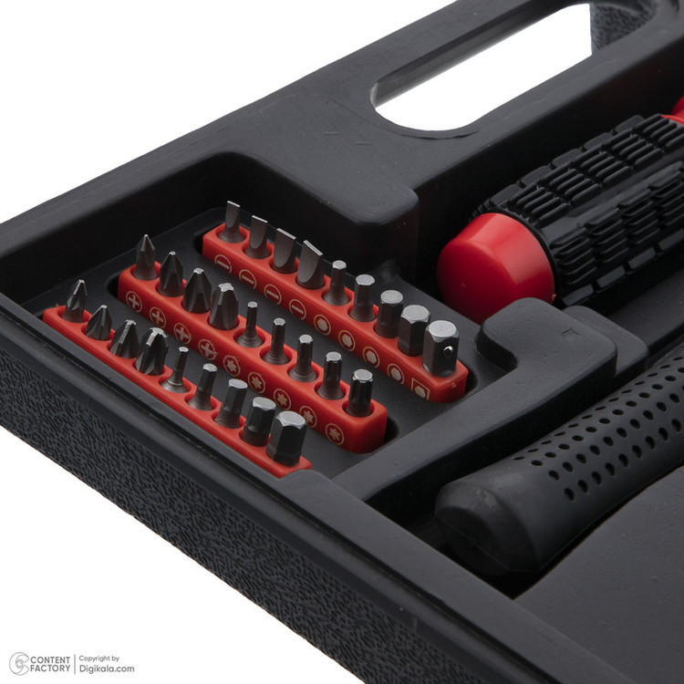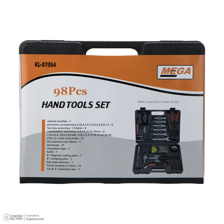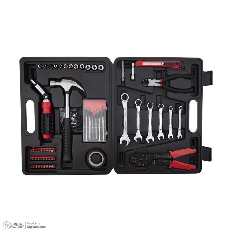 محتویات مجموعه: آچار آلن , آچار یکسر تخت یکسر رینگی , انبر سیم لختکن , پیچ گوشتی , چسب , چکش , دسته جغجغهای , سری بکس , سری پیچگوشتی , کاتر