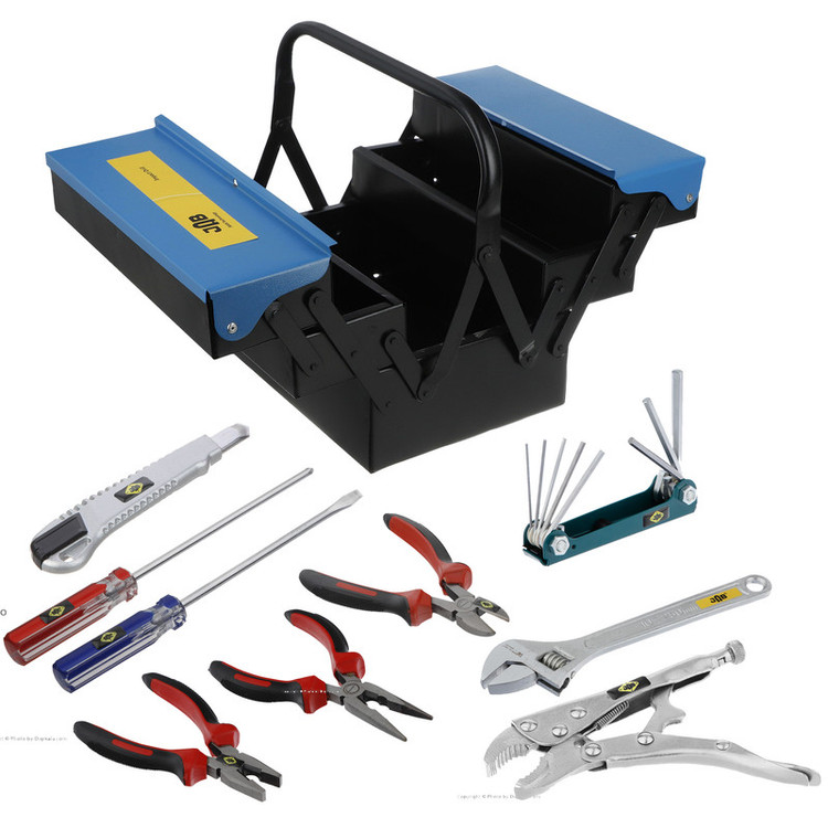 شامل: مجموعه 8 عددی آچار آلن جاب آچار فرانسه جاب سایز 10 انبر دم باریک جاب سایز 6 انبر دست جاب سایز 6 انبر دم باریک جاب سایز 6 پیچ گوشتی چهارسو و دو سو جاب کاتر سربی جاب انبر قفلی سایز 10 جعبه ابزار فلزی جاب 30 سانتی