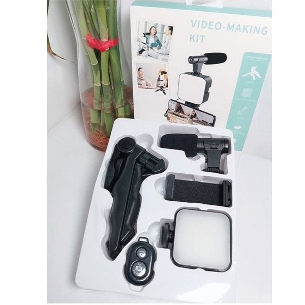 سه پایه کنترل میکروفون چراغ LED کابل AUX نگهدارنده موبایل