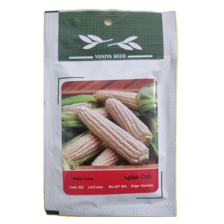 ذرت سفید دانه های سفیدی همانند شیره درون خود دارد. ذرت سفید طعم بسیار خوبی دارد و برای پخت و پز بسیار عالی است. ذرت سفید گیاهی یک ساله و یک پایه است. برگ های آن متناوب و دراز و گل های نر ذرت به صورت خوشه ای بوده که مرکب از سنبل های قرمز روشن می باشد. گل های ماده آن از 2 تا 4 گل تشکیل شده که در کنار برگ های ذرت قرار دارد. غشایی که روی بلال را می پوشاند سبز رنگ می باشد. دانه های کروی شکل در اطراف محور مرکزی بلال قرار گرفته اند. ذرت سفید از طریق بذر تکثیر می شود. در کاشت بذری ابتدا بذرها را به مدت 12 تا 24 ساعت در آب ولرم خیس کنید. بستر مورد کشت را برای کاشت بذر ذرت سفید به صورت ردیفی آماده و خاک آن را نرم کنید. بذرها را در عمق 1 تا 3 سانتی متری خاک بکارید و روی آن را با لایه نازکی از خاک نرم و کود بپوشانید و گیاه را آبیاری کنید و تا زمان جوانه زنی بستر مورد کشت را مرطوب نگه دارید. پس از گذشت مدتی بذر ذرت سفید جوانه می زند و شروع به رشد می کند. این گیاه رشد به نسب آسان و سریعی دارد طوری که پس از گذشت 4 تا 6 ماه بالغ و قابل استفاده می شود. این گیاه برای رشد به خاک حاصلخیز و غنی نیاز دارد. خاک باید از زهکشی مناسبی برخوردار باشد. دمای مناسب برای رشد ذرت سفید 15 تا 25 درجه سانتی گراد است. گلدهی این گیاه دو تا سه ماه پس از کاشت بذر است. به آبیاری متوسطی نیاز دارد. ذرت سفید برای رشد به آفتاب کامل و نیمه سایه نیاز دارد.