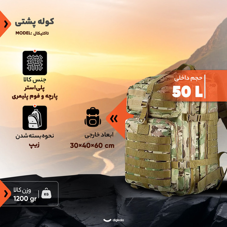 کوله پشتی 50 لیتری مدل تاکتیکال