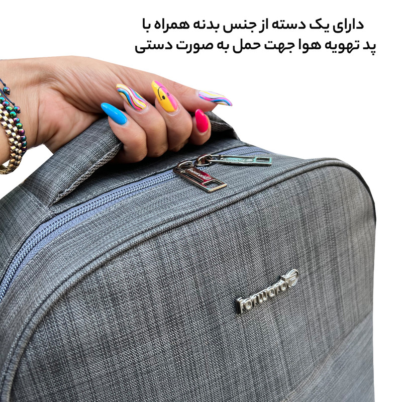 جیب بیرونی , جیب داخلی , دارای یک محفظه اصلی , محفظه نگهداری لپتاپ