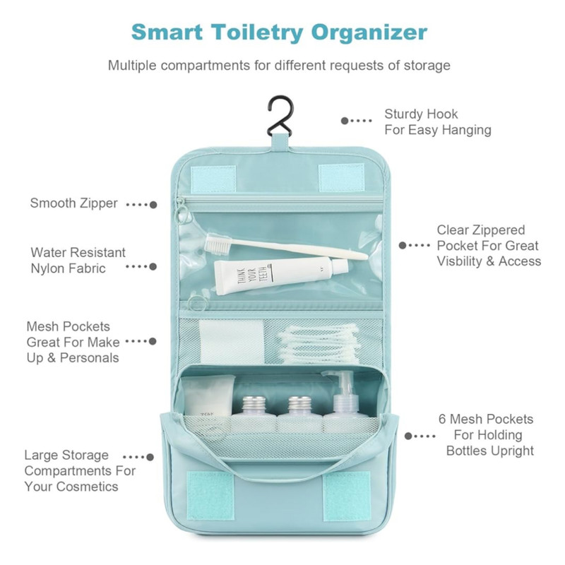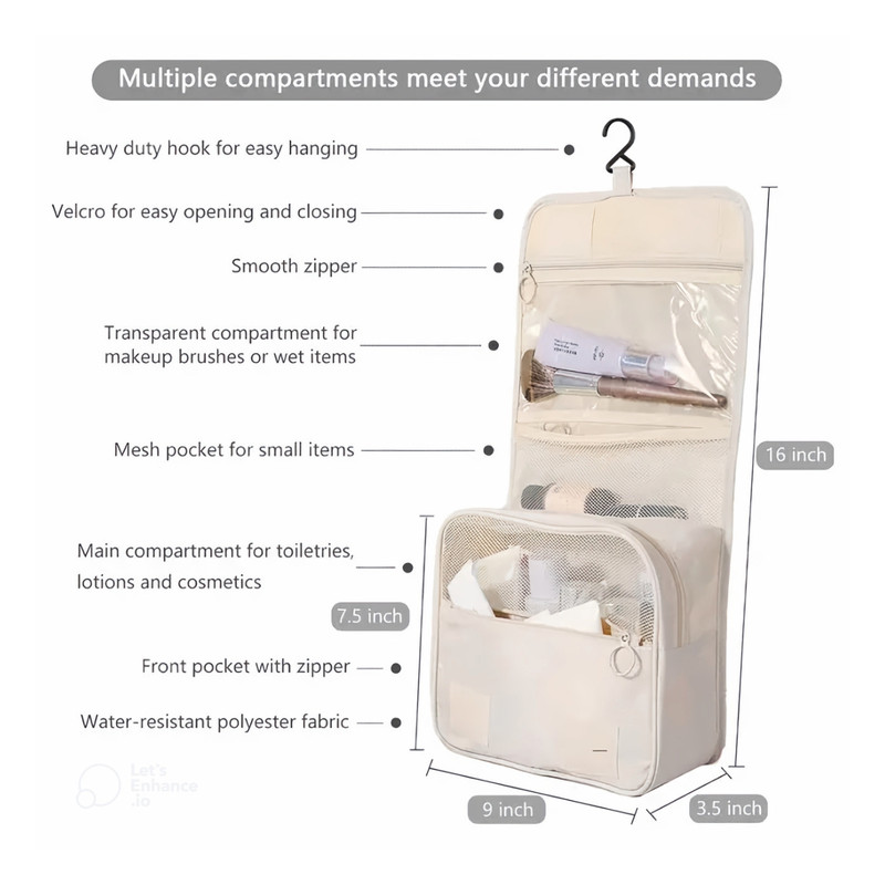 جیبهای بزرگ بیرونی اقلام اضافی را برای دسترسی آسان هنگام بسته بودن کیف نگهداری میکنند. سه محفظه اصلی داخلی لوازم بهداشتی و آرایشی شما را در جای خود نگه میدارند و یک جیب جلویی زیپدار فضای اضافی با دسترسی آسان فراهم میکند.