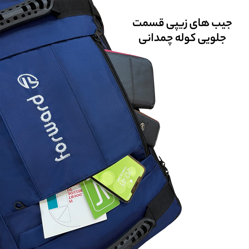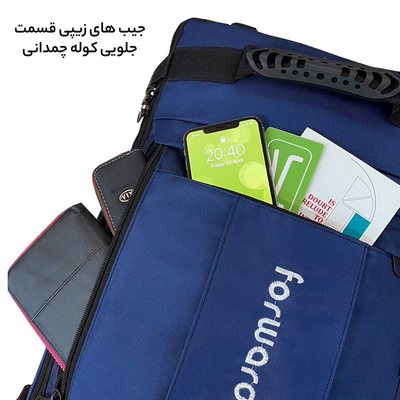 دارای یک محفظه بزرگ باز شونده به صورت چمدانی جهت دسترسی آسان به وسایل دارای یک جیب زیپی به صورت عمودی در قسمت رویی کوله دارای یک جیب زیپی افقی در قسمت رویی کوله