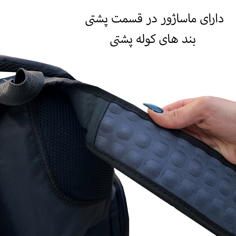 دارای دو بند کوله همراه با ماساژور در قسمت های بند کوله دارای یک دسته از جنس بدنه جهت حمل دستی دارای یک دسته از جنس نوار جهت آویزان کردن و جا به جایی کوله همراه با دوخت الیک