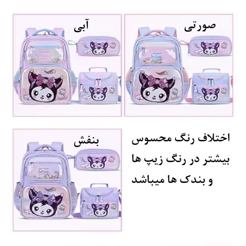 کوله پشتی مدرسه مدل کرومی 2619 به همراه کیف ظرف غذا و جامدادی