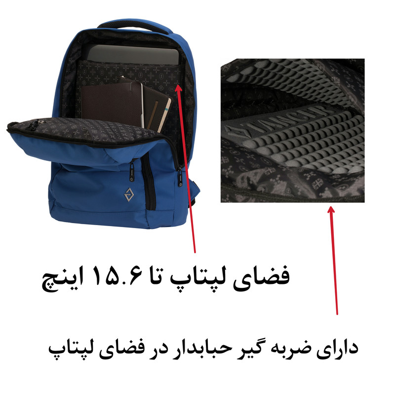 جنس این محصول از پارچه وارداتی پشت مواد و ابعاد 45x29x14 سانتی متر و وزن : 625 گرم می باشد. این کیف دارای فضای اختصاصی برای لپ تاپ های تا 15.6 اینچ بوده که با ضربه گیر aircell دوطرفه و ابر ضخیم در کناره ها و کف کیف از لپ تاپ محافظت میکند. از ویژگی های دیگر این محصول میتوان به دارا بودن دو جیب بزرگ بیرونی زیپ دار،بند مخصوص آویز عینک، جاکلیدی و مقاوم بودن در برابر بارندگی و خیس شدن اشاره کرد. در طراحی این کوله از پارچه راشل با کیفیت در پشت کیف به جهت ایجاد گردش هوا و جلوگیری از تعریق کمر استفاده شده است.